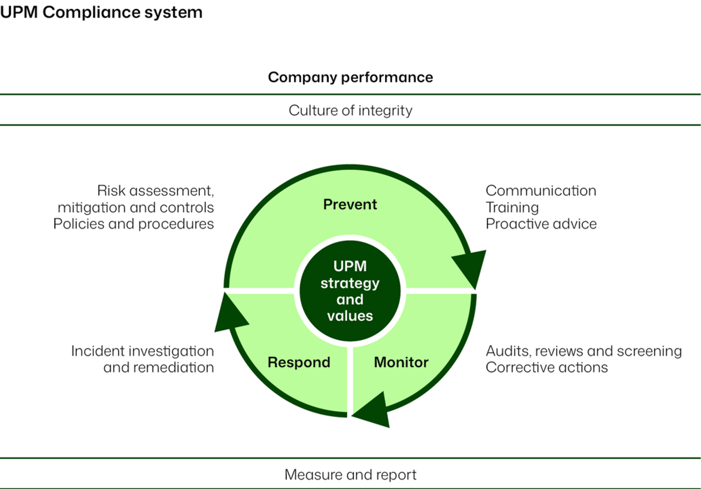 We integrate sustainability management and compliance with laws and regulations into our operations through international management systems and a compliance system. The UPM Sustainability Policy Statement and related standards and guidelines provide the basis for transparent, compliant, and third-party verified reporting at the group, site, and product levels.