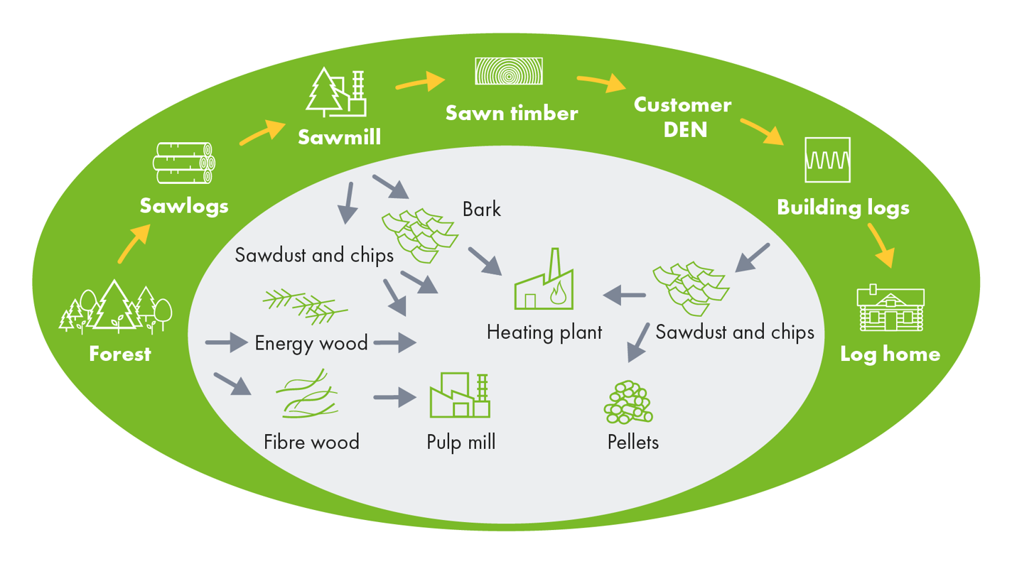 Sawn timber supplier UPM Timber and small home and log house supplier DEN Finland both understand the uniqueness of wood and share a desire to ensure a responsible production chain. Responsibly managed forests form the cooperation’s first link, and at the end of the chain, you will find log houses with a life cycle from tens to hundreds of years. The appreciation of wood that UPM Timber and DEN share is evident, for example, in the careful use of raw materials at every stage of the supply chain.