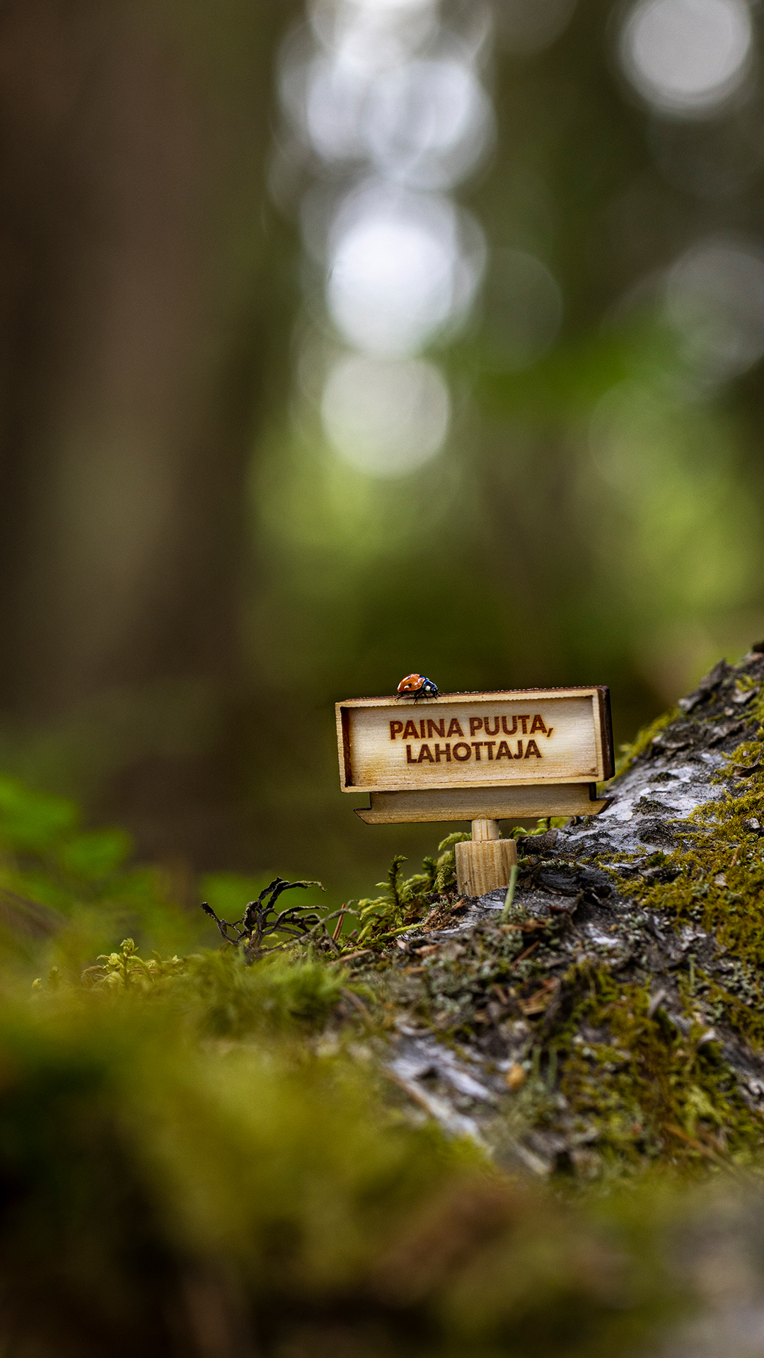 UPM tukee Luonnonvarakeskuksen (Luke) ja Helsingin yliopiston tutkimusta, jolla selvitetään uutta tapaa lisätä lahottajasienipopulaatioita. Harvinaisten lahottajasienien lisääntyminen luo lahopuulla eläville lajeille uusia elinympäristöjä ja edistää siten luonnon monimuotoisuutta. UPM pyrkii lisäämään tietoisuutta biodiversiteetistä ja tästä ainutlaatuisesta tutkimuksesta käynnistämällä kampanjan, jossa pienet mainostaulut kutsuvat metsän pienimpiä asukkeja asettumaan ympäristöön, missä luonnon monimuotoisuutta vahvistetaan.
