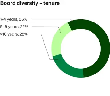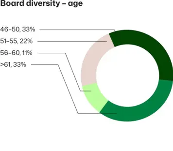 When preparing the proposal, the committee reviews annually the performance, effectiveness, composition and successional needs of the Board as a whole and considers, among others, whether the Board is sufficiently diverse in terms of professional and educational backgrounds, gender and age, and whether it represents an appropriate mix of relevant knowledge and experience as well as independence of judgment and diversity of perspectives to be able to address the needs of the company’s business operations and strategic agenda.