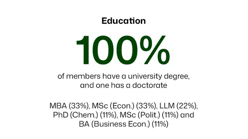 A more comprehensive description of the director nomination process is included in the Board's Diversity Policy. The graphs below illustrate the Board's diversity in respect of education, nationality, age, gender and tenure.